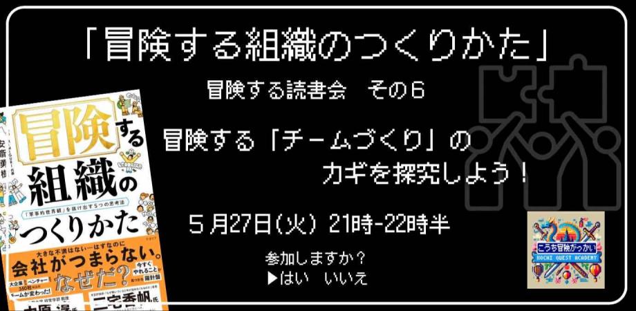 5/27 【冒険する読書会その6】安斎勇樹『冒険する組織のつくりかた』冒険するチームづくりのカギを探究しよう