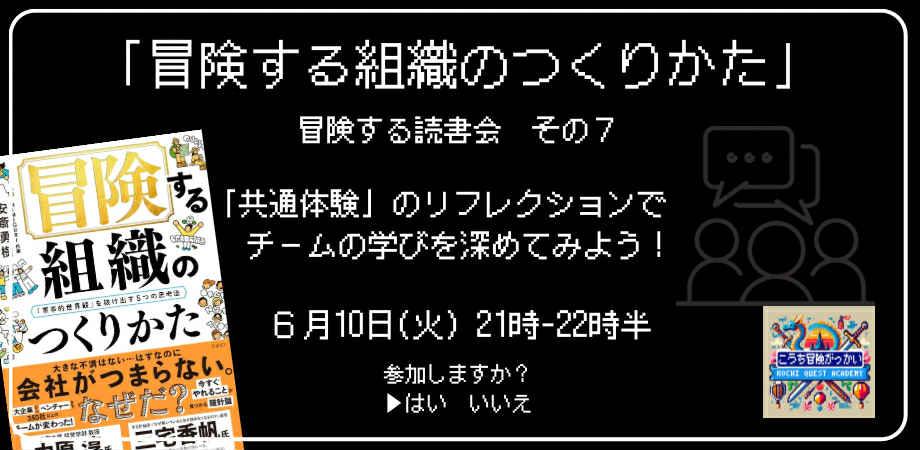 6/10 【冒険する読書会その7】安斎勇樹『冒険する組織のつくりかた』「共通体験」のリフレクションでチームの学びを深めてみよう!